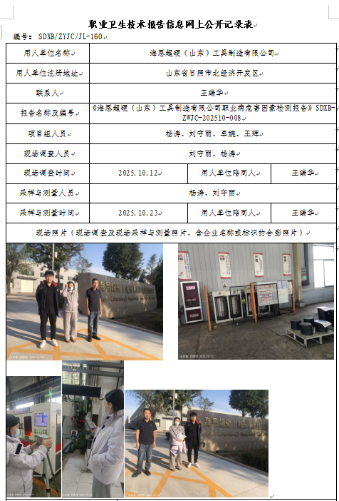 海恩超硬(山东)工具制造有限公司2025年定期检测