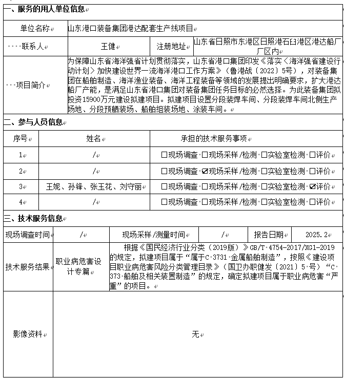 山东港口装备集团港达配套生产线项目职业病危害设计专篇