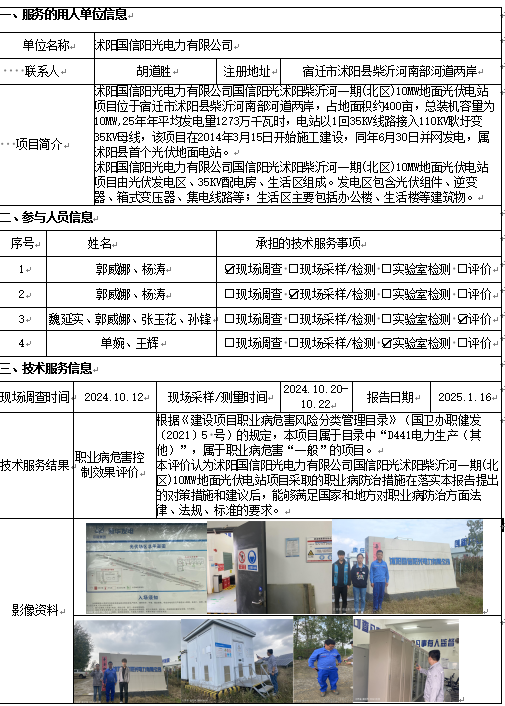沭阳国信阳光电力有限公司职业病危害控制效果评价